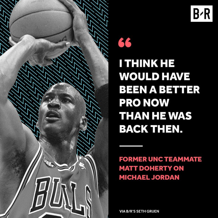 乔丹大学时期的队友马特-多尔蒂表示即使是在如今这样社交媒体发达的时代,乔丹也会让自己远离各种麻烦,而这一切都要归功于北卡大学的传奇教练迪恩-史密斯先生,“我们有一个伟大的教练,他会管好社交媒体这些事的,不管他说什么,乔丹都会言听计从。”