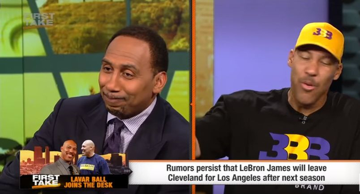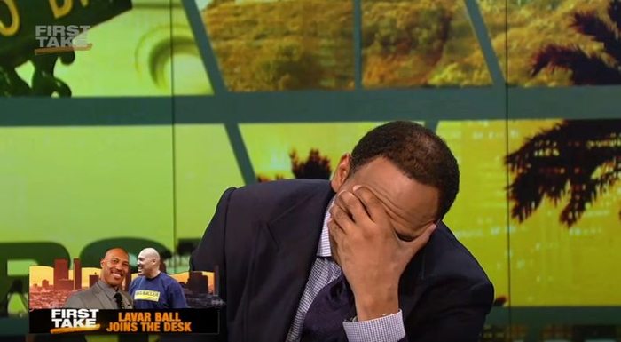 直播吧9月14日讯 球爹放话,新赛季湖人保底50胜,这个言论让素以大嘴著称的“美国杨毅”史蒂芬-A-史密斯都惊呆了……