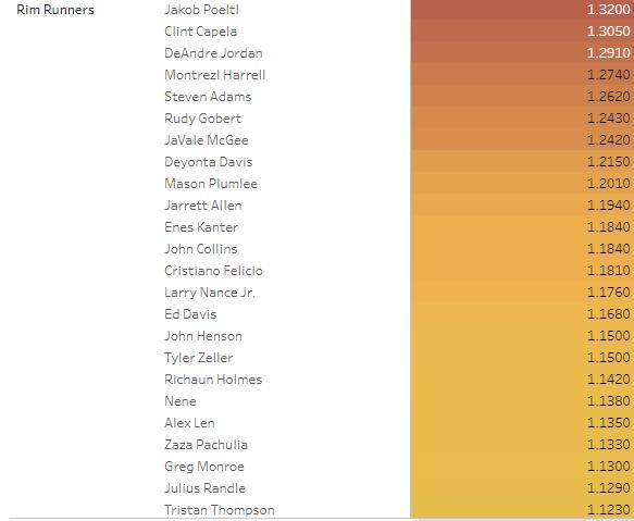 篮筐人:这些是生活在油漆区的球员(在这片区域有着70%的出手率),他们通常依靠空接和接球扣篮完成进攻。像戈贝尔和卡佩拉这样的球员都是值得注意的例子。