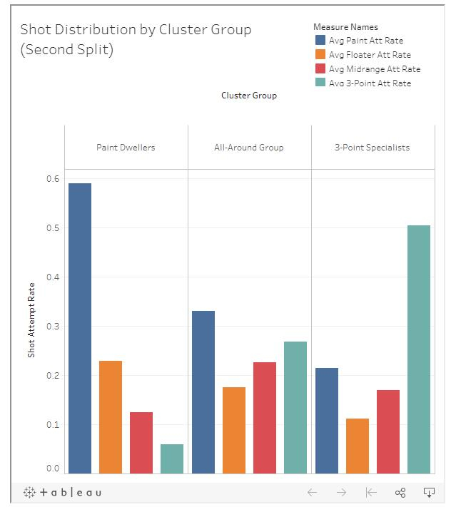 我们现在升级对三分组再进行划分,那么三分组会分成两个更具体的组别:三分球专家组和投篮均衡组,见下图: