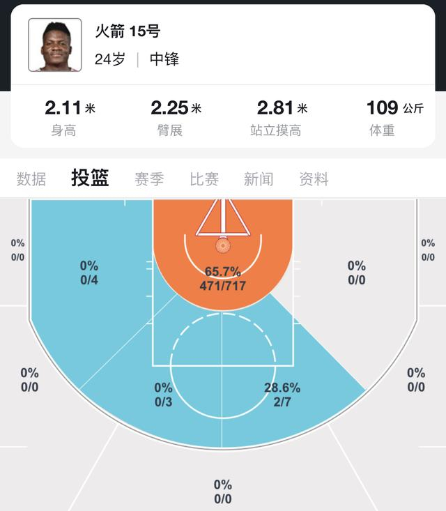 在8英尺以内的区域,也就是篮下附近,卡佩拉总共出手717次,命中471球,命中率达到了65.7%。卡佩拉也是在这个区域吞下了来自保罗、哈登等人的大饼。其他区域总共出手14次,相信这也不是卡佩拉要强行出手,只是因为球回到了他手里,不得不投了。