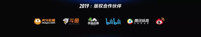 此外,虎牙直播、斗鱼、熊猫直播、哔哩哔哩、腾讯体育和微博将成为2019版权合作伙伴。