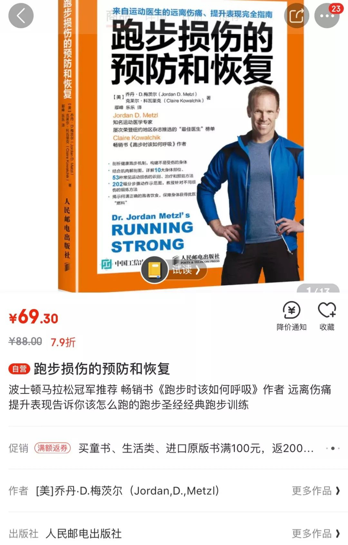 最后,《跑步损伤的预防和恢复》对各种因跑步而起的疼痛和伤病剖析的相当透彻,书中介绍的治疗和预防方法干货满满,是每一位严肃跑者必备的案头工具书。各大电商平台有售,购买请认准:人民邮电出版社。