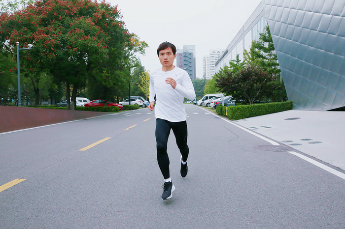 经过小编亲测,按照北京现在的气温晚上七八点进行夜跑,上身只穿这件长袖速干T恤,几乎不会感到寒冷。