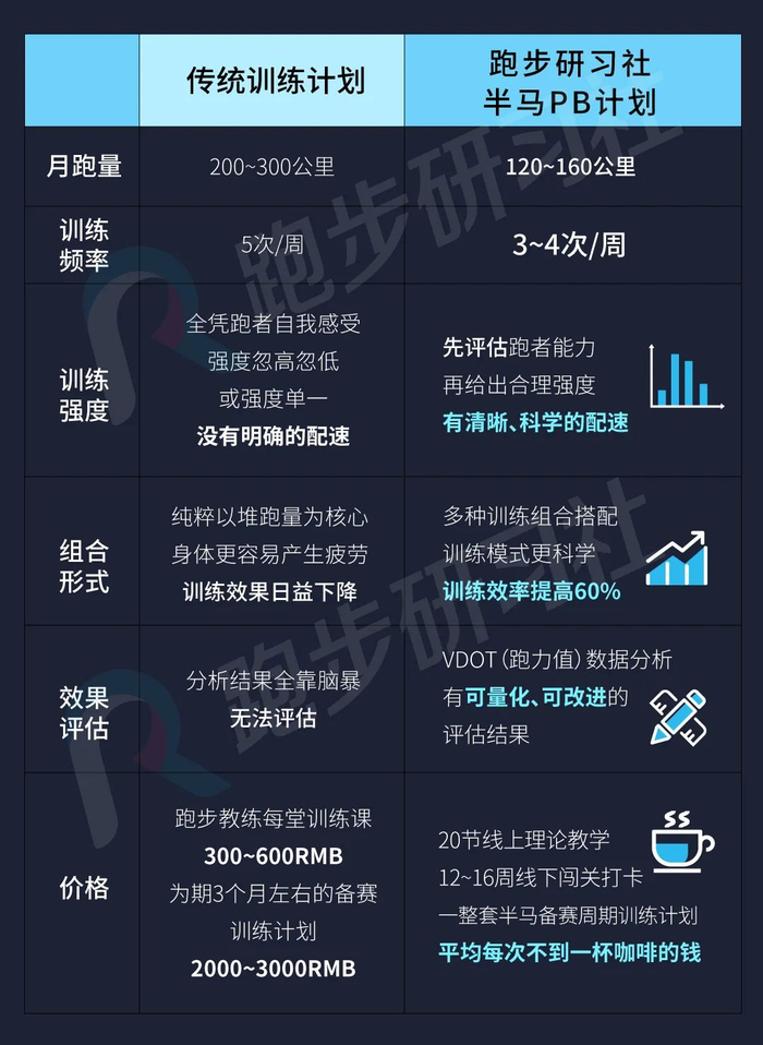 「跑步研习社半马PB计划」平均每次不到1杯咖啡的钱