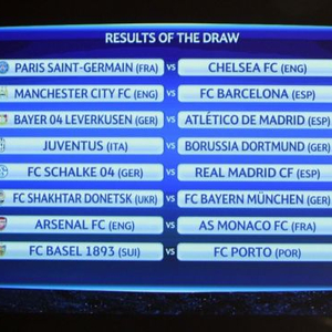 欧冠1/8决赛抽签