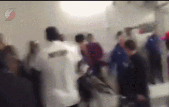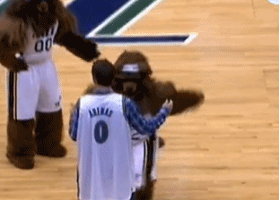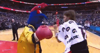 火箭队的火箭熊无疑是中国球迷最为熟悉的NBA球队吉祥物,它憨态可掬的外形,超一流的搞笑天赋和活跃气氛的能力在所有吉祥物中都出类拔萃。丰田中心的观众往日少不了被这个呆萌的胖熊整蛊,但在2月的一场比赛他却碰上了职业生涯至今最大的克星——开拓者队的罗宾-洛佩兹!火箭与开拓者赛前投篮训练时,火箭熊身穿迷彩服手持玩具枪向洛佩兹挑衅,没想到对方忽然暴起直接将自己放翻在地,枪也被洛佩兹狠狠夺走。