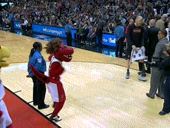 然而,洛佩兹蹂躏吉祥物的故事还远远没有结束,3月16日开拓者做客多伦多,猛龙吉祥物Raptor又蓄意带上假发套挑衅,结果也获得了惨痛的下场。