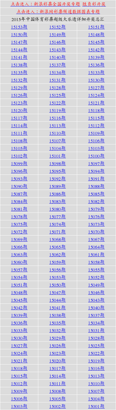 资料-中国体育彩票超级大乐透2015年详细开奖总汇