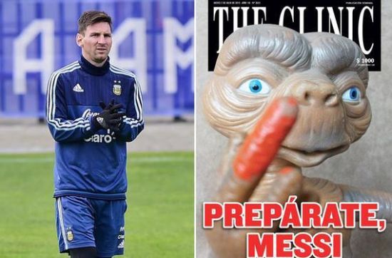 智利的《门诊报》,就用一幅合同图片,警告和恐吓了梅西。这幅图片是充满争议的,画面上,一个外星人举起了一根染着鲜血的手指,并喊出一句:“你等着,梅西!”