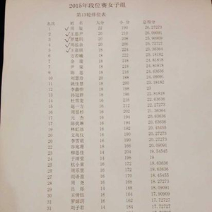 本赛10轮战罢,潘亭宇、赵俊哲9胜1负提前定段。女子组陈思9连胜后4连败,遗憾无缘定段。2015年25位新初段如下: