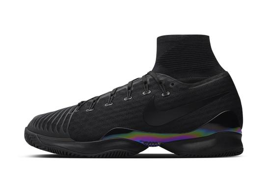 NikeCourt Air Zoom Ultrafly轻质、重心低,采用了经过田径赛场测试的Pebax®弹性夹板,配备六角形Nike Zoom Air气垫单元和Flyknit技术的踝带。不对称的结构、特别是系带的位置,则是为了帮助球员更好地完成对角线移动。