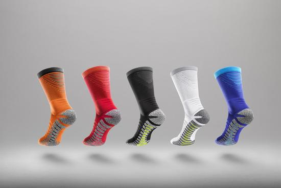 然而找到合适的纤维只是第一步。设法创造合适的抓力并将其置放于合适的部位同样重要。抓力太小会导致袜子滑落,抓力太强又会影响灵活性。克拉克解释道:“我们就是要在这两种状态之间找到平衡点,进而让运动员更感舒适。”经过对穿着测试的数据分析,设计师在大脚趾与足跟处增加了接触点,改进了袜子的剪裁,尺码划分更细并减少多余的面料,带来更加精确舒适的足跟锁定系统。通过这些设计,NikeGRIP与Nike鞋内底共同发挥作用,从根本上加强了运动员所需要的抓力和稳定性。