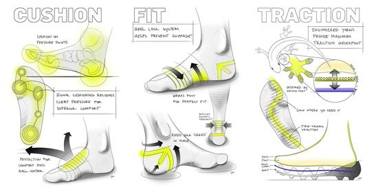 传统的想法认为袜子滑落的原因是袜子与鞋子之间的抓力不足。然而就像Nike袜类产品设计总监提姆·克拉克(Tim Clark)说到的一样:“从运动员处得到的见解是,袜子与脚部间的抓力不足一样会导致袜子滑落。我们的目标就是同时增强袜子内外两侧的抓力,为运动员带来独特的解决方案。”