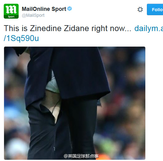 官方:齐达内的内裤是白色的