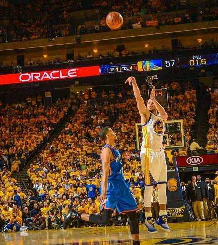 西部决赛的第一战结束了,雷霆队出人意料的战胜了勇士,这一场比赛从史蒂芬-库里在第二节比赛结束前42.4秒投中第一记三分球的时候开始,就已经是一场注定要被载入史册的战役。
