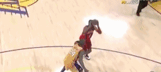詹姆斯可不止有一次这样的经历,在热火队期间,詹姆斯就曾多次因为跳起后裆部撞到对手倒地。