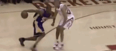 巴蒂尔曾经是火箭队防守科比的一大利器,不过科比为了腾出突破的空间不自觉的伸开了手,于是巴蒂尔悲剧了。