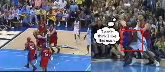 身高2米11的霍华德在魔术队时期,也曾经感受过“淡淡的忧伤”,在与马刺的的比赛中,在一次拼抢时霍华德的裆部被蒂姆-邓肯不慎踢中。