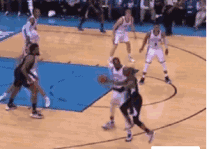 而到了本场比赛,格林故伎重演,而这一次受伤的还是亚当斯的下体。上半场比赛过程中,格林在一次上篮时左脚刚好踢中了史蒂文-亚当斯的裆部,亚当斯痛苦的倒地不起。