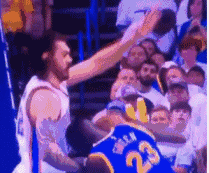虽然比赛早早的就进入了垃圾时间,但场上却不乏看点,例如德雷蒙德-格林又踢史蒂文-亚当斯的裆部了。