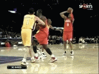 人在江湖漂哪有不挨刀,科比也曾有过裆下被袭击的历史,在湖人三连冠时期,在一次进攻上篮中,奥尼尔的手不慎戳到了科比的裆部。