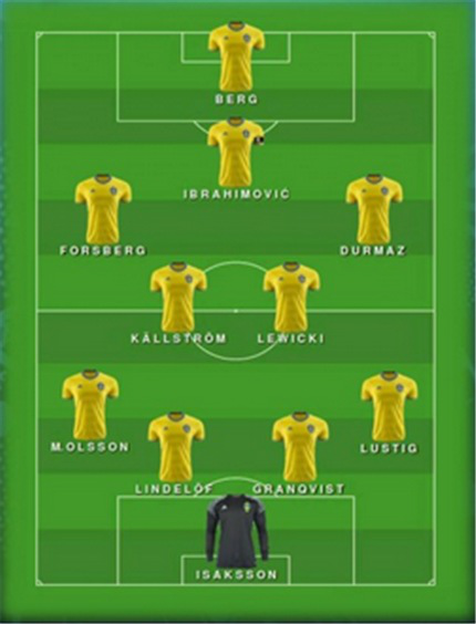哈姆伦时期的瑞典队始终是一支偏爱进攻、向前意识很强的球队。之所以他们的打法看上去像是长传反击,是因为中场有球能力较弱而根本控不住球。在使用4-1-4-1阵型的预选赛里,瑞典队仍然不能实现控制球和层层推进,增加一名中场之后也没有从中路创造出任何东西,相反却使单中锋更加缺少支援。本届赛事瑞典依然有希望使用传统4-4-2阵型,一种直来直去,用大量的长传球打冲击快攻的打法还是更加适合这支北欧劲旅。瑞典的4-4-2阵型在快攻中会因福斯贝里的勇敢穿插变为4-3-3,这是增加进攻效率的关键所在。另外,最后一击的环节很容易预测——伊布拉希莫维奇打进19个预选赛进球中的11个。