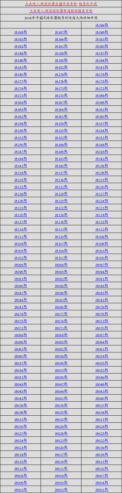 中国足球彩票胜负彩任选九场详细开奖(2016)