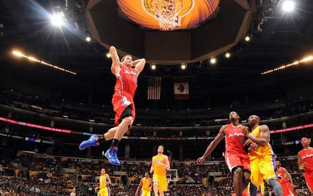 最近深陷交易传闻的格里芬是出了名的暴力扣将,他的扣篮动作不仅幅度大,而且力量十足,同时起跳高度也是让人叹为观止。他与克里斯-保罗的空接配合更是洛杉矶快船队主场的一大固定表演。