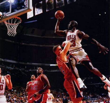 与科比一样,乔丹同样也是著名的训练狂。不过比起科比,乔丹有着更为出色的天赋,1米98的他有着2米12的臂展,外加一双长度达到31公分的大手。这让乔丹可以在球场上轻松的抓住皮球,加上他1.09米的助跑弹跳高度,乔丹开始了他肆虐篮筐的道路。