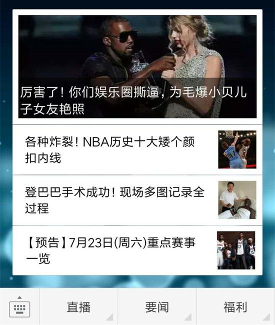 新浪体育微信公众号今日推送依然精彩不断:厉害了!你们娱乐圈撕逼,为毛爆小贝儿子女友艳照?登巴巴手术成功!现场多图记录全过程;更多精彩,尽在新浪体育微信公众号!