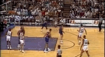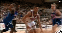 1米91的斯塔克斯也算是一位励志球星。选秀落选的他入选过全明星替补阵容、入选过最佳防守阵容二阵、荣获过最佳第六人。但整体上看,跟鼎盛时期的公牛比起来,他也不过是一个草根。然而,正是这位草根,在公牛王朝第一个三连冠时的第三得分手、主力中锋格兰特头上结结实实地来了一次隔扣。而那个上去协防的人,正是伟大的迈克尔-乔丹。
