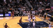 2007年季后赛,“大胡子”拜伦-戴维斯率领着那支“金州匪帮”打出了名垂青史的代表作。首轮六场击败常规赛冠军小牛之后,他们在西部半决赛面对铁血爵士也毫不手软。这一球发生在2007年5月11日,大比分0-2落后的勇士在回到主场后为球迷献上了一场大胜。比赛还剩最后2分48秒时,勇士已经领先20分了,但戴维斯不依不饶,过掉巅峰的德隆后杀进内线骑扣基里连科。赛后有媒体如此评价这一球:大胡子将AK47硬生生地掰断了。