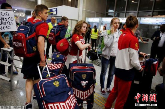 当地时间7月24日,里约热内卢,俄罗斯奥运代表团抵达机场,等待领取托运行李。