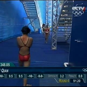 北京时间8月19日凌晨,里约奥运会女子10米跳台决赛中,任茜第四跳!!是一个臂力动作!向后翻腾两周!转体一周半!得分91.20分!目前排名第一继续领跑!