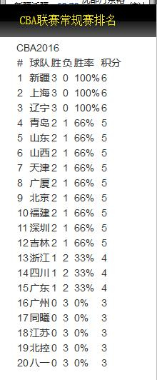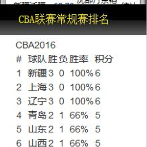 第3轮积分榜-新疆榜首广厦第8 辽宁第3北京第9