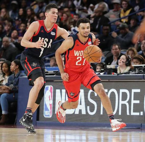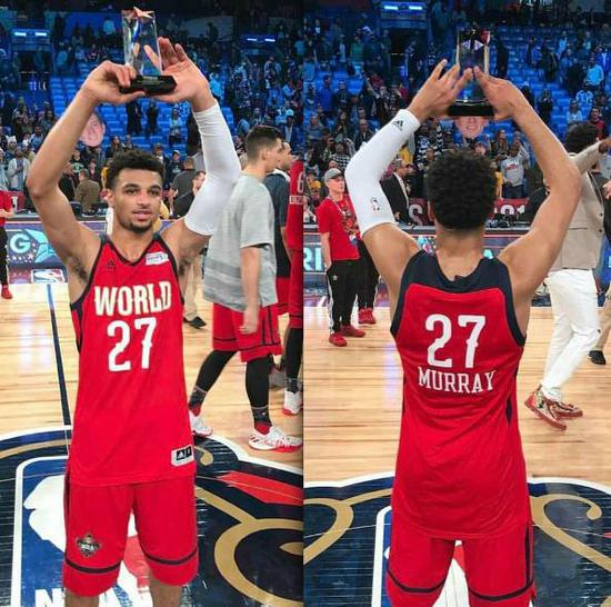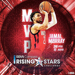 乔尔-恩比德的缺阵更是让这场新秀赛看点大减,然而就是在这样一场比赛中有一个年轻人成功救场,他就是掘金队小将贾马尔-穆雷。