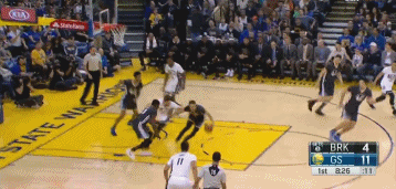 本节还剩8分40秒,汤神接到库里的助攻完成一个上篮。紧接着下一个回合,库里完成一次抢断,随后他不看人将球传给汤神,汤神在侧翼位置三分命中。勇士打出这波进攻之后,他们的领先优势达到了10分。