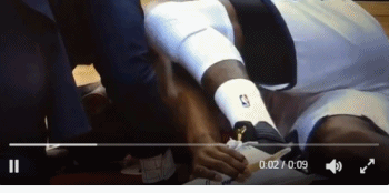 当时两队比赛进行到距离半场结束前1分45秒,沃尔持球推进发动转换进攻,在上篮时面对诺埃尔的防守,他直杀篮下顶开防守。但是在落地时,沃尔的脚踝踩到了防守球员的脚。倒地后的沃尔表情非常痛苦,奇才队立刻请求暂停对沃尔进行治疗。奇才主场球迷也是非常揪心,不过经过半场休息的时间,沃尔重新回到赛场。目前他再次披挂上阵,看在场上的状态,脚踝伤势对他的影响并不大。