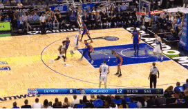 今天面对活塞,尽管佩顿的得分并不多,但是他在进攻端打得很有侵略性,距离上半场结束还剩不到1分钟,佩顿在右侧45度三分线外crossover过掉防守球员,然后突破到篮下,并且在两名球员的防守之下抛投得分。