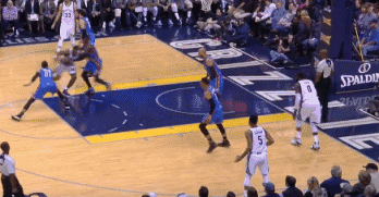 本季雷霆将反击战发挥得淋漓尽致,除威少一人脚踏风火轮的单枪匹马外,他与奥拉迪波的两人连线成为雷霆守转攻标志。还记得威少对阵太阳时第6次助攻吧,吉布森后场篮板交由威少,后者未加丝毫停顿直接双手推传前场,奥拉迪波已经风驰电掣般跨过半场,尔后运一步罚球线纵起,皮球打板入网,威少本赛季第820次助攻、场均三双惊醒55年大O传奇纪录一刻映入现实。