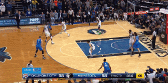 比赛还有9秒终场结束,客场作战的雷霆与森林狼战成98平,奥拉迪波左侧45度弧顶运球摆头假动作突至三分线内一步,尔后迎着卢比奥扑封式防守,急停、后仰、出手,皮球划出一道美丽弧线旋入网窝,奥拉迪波右手高举,直指苍穹,准绝杀!