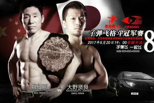格斗迷讯 5月20日由北京子弹搏击文化传媒有限公司推出的国际级专业格斗赛事《子弹飞综合格斗冠军赛》,将再次回到北京,举办第八期比赛 。本次大赛头条赛是由中国MMA名将、前武林传奇雏量级金腰带冠军“鬼跤姚”姚红刚对阵日本悍将大野贤良。