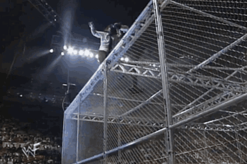 1998年的密室牢笼赛中,米克福利为WWE的贡献实在太大,自己心甘情愿被送葬者从铁笼顶推下,直接导致自己晕厥了几分钟,WWE的医护人员都到了现场,估计送葬者再凶残,自己也不想失手将人推下