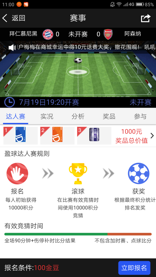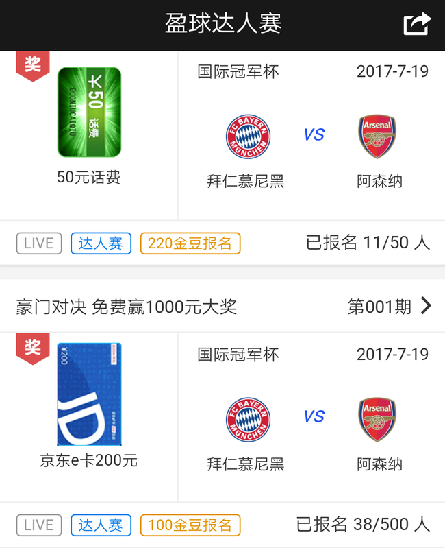 报名参与竞猜冠军杯:拜仁VS阿森纳