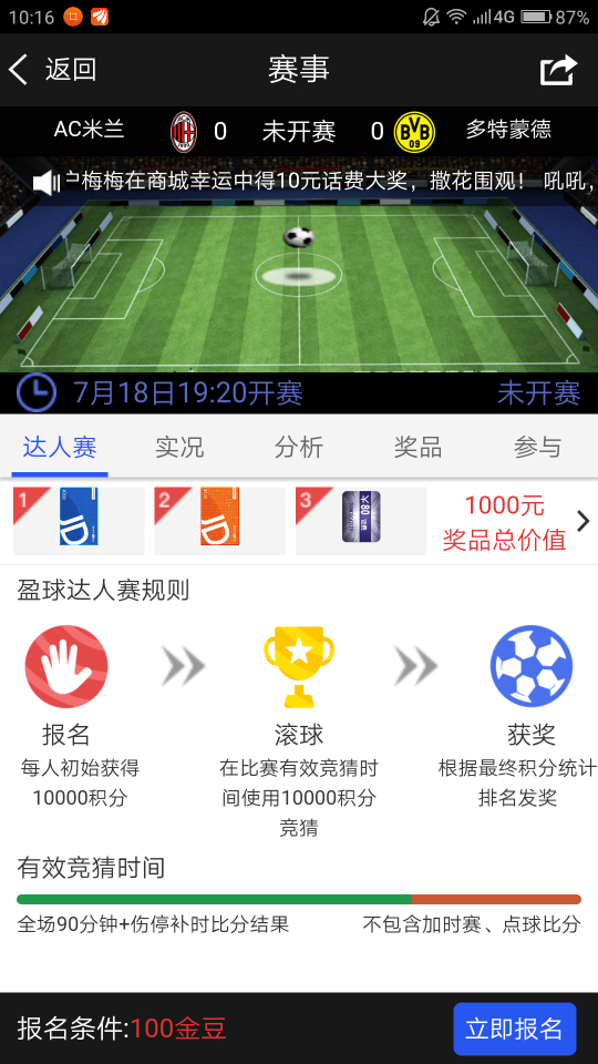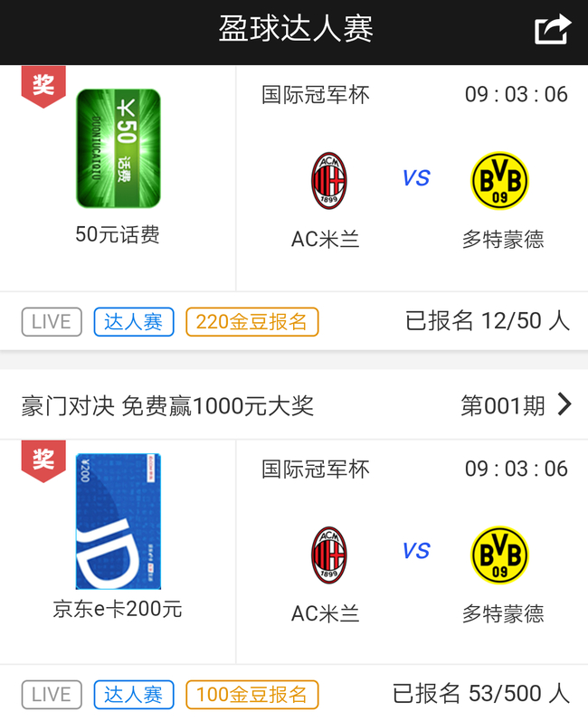 报名参与竞猜冠军杯:AC米兰VS多特蒙德