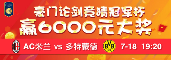 冠军杯米兰vs多特 竞猜豪门对决赢6000元大奖