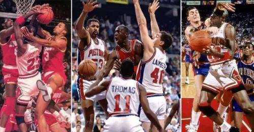 曾记得上世纪80年代到90年代的比赛,那个时代的犯规…嗯,可以用凶狠两个字来形容。还有记得活塞当年坏孩子军团的么?05年虽然也有活塞五虎,但和坏孩子军团比起来,只能算乖孩子…伊塞亚-托马斯、比尔-兰比尔、丹尼斯-罗德曼、里克-马洪,这一批球员真是让当时联盟的其他球队闻风丧胆……