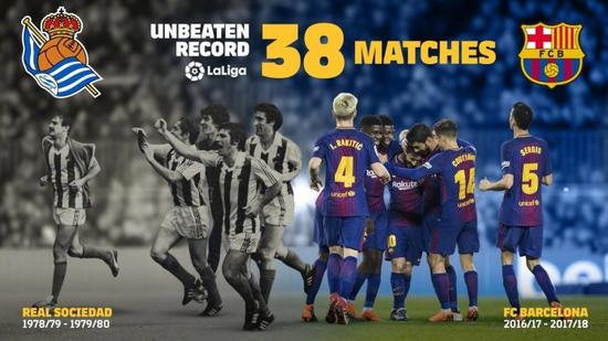 巴塞罗那主场3-1击败莱加内斯,梅西上演帽子戏法。巴萨收获了跨赛季38场不败战绩,追平了1979-80赛季的皇家社会,并列西甲最长不败纪录。自2017年4月8日0-2负于马拉加以来,巴萨已经整整一年没有在西甲输过球了~