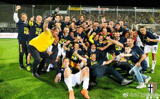 客场2:0斯佩齐亚的同时,帕尔马等来了弗洛西诺内主场战平的消息。帕尔马得以力压对手成为意乙第二,直升意甲!三年前,帕尔马因财政问题被勒令降入第四级别联赛。然而,他们却用一个意大利足坛此前从未有过地三连升,以最快的速度回到意甲联赛。